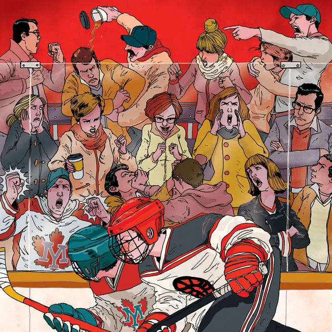 While my wife is a lifelong fan and player, I am a reluctant hockey mom. Having spent much of the past decade shivering in rinks, my emotional terrain feels as twisty and perilous as the dipsy-doodle stickhandling manoeuvres of my son’s idol, the Chicago Blackhawks’ Patrick Kane. Some moments give me enormous pleasure, watching my kid and his friends play a sport that is at once gritty and graceful. Others fill me with dread that some child will wind up curled into a ball on the ice yelping in pain, or that the genial air of competition in the stands will erupt into high tempers, heckling and even fist fights. Like a lot of GTHL parents I know, I trawl for sanity in a culture that seems increasingly unhinged. Over acidic arena coffee we flatter ourselves that we’re not crazy, not like some hockey parents. But when you find yourself driving 90 minutes through Toronto traffic so your child can play 10 minutes in a game, or shrieking “Hustle! Hustle!” to a bunch of fifth graders, or charging a thousand dollars to your already overloaded credit card for a weekend tournament in Niagara Falls, you have to admit that every hockey parent is a crazy one.